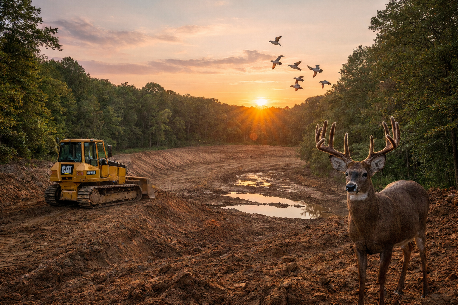 Rooted in Jesus. Veteran owned. Conservation minded. Heavy equipment capability for ponds, clearing, trails and habitat that helps your land thrive.